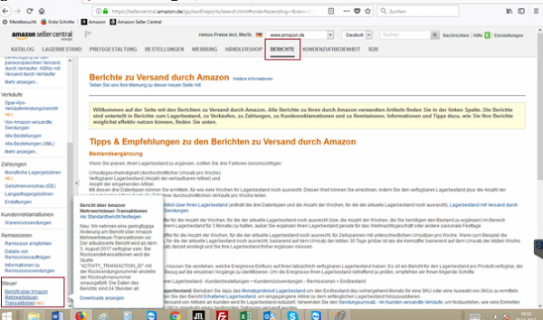 Danach können Sie über „Berichte“ / „Steuer“ / „Ein Bericht über Amazon Mehrwertsteuer Transaktionen“ den Bericht monatsweise anfordern und downloaden.