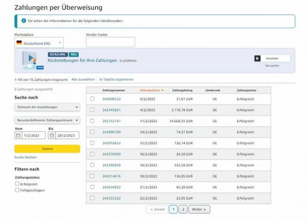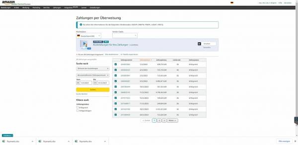 Die Berichte für die Verarbeitung in der Schnittstelle, werden im Bereich Amazon/Berichte/Überweisung bereitgestellt.