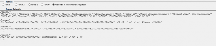 Inzwischen gibt es bei Klarna auch die Möglichkeit sich mit dem Konfigurator ein Format selbst zu erstellen. Wenn Sie dort alle Felder, die es gibt auswählen und hier den Radio-Button auf alle „Alle Felder im neuen Klarna Konfigurator“ setzen, lässt sich die Datei in die Schnittstelle einlesen.