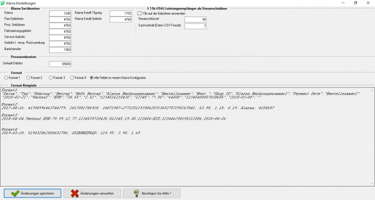 Über die Schnittstelle haben Sie die Möglichkeit den § 13b UStG auf die Klarna-Gebühren anzuwenden.