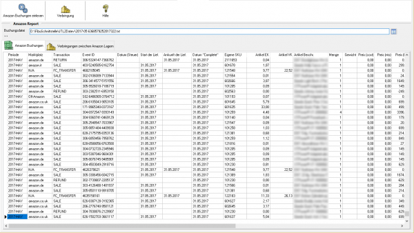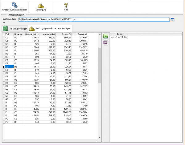 Aus diesem Report können Sie nun die eigentlichen Verbringungen zwischen den Amazon Lägern ermitteln.