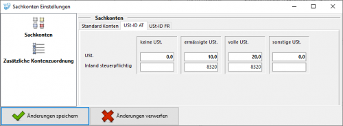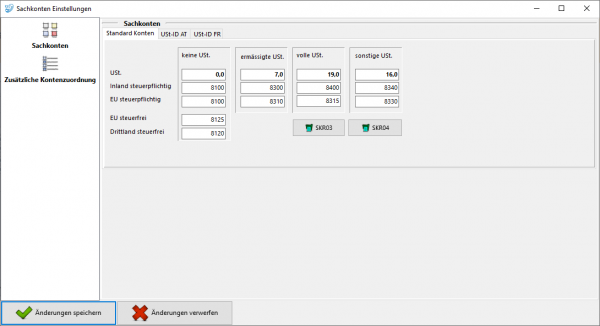 Hier können Sie die zusätzlichen Erlöskonten eintragen. Wenn Sie keinen Eintrag beim Konto gemacht haben, werden die normalen Konten benutzt.