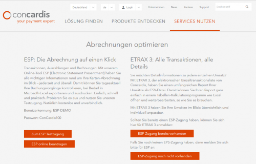 Die Schnittstelle nutzt das ETRAX3 Format von Concardis. Dieses können Sie im concardis Backend freischalten.