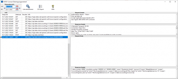 Um mögliche Problem nachzuvollziehen, werden alle Übertragungen zum DATEV Rechenzentrum protokolliert.