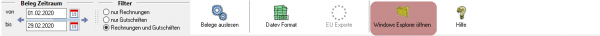 Sie haben nun die Datev CSV Dateien erstellt. Mit dem Button „Windows Explorer“ können Sie einen Windows Explorer öffnen. Dieser öffnet sich direkt mit dem Verzeichnis, in dem die Datev CSV Dateien auf Ihrem Rechner liegen.