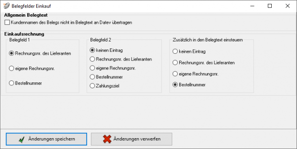 Hier können Sie den Inhalt der Belegfelder für den Einkauf festlegen.