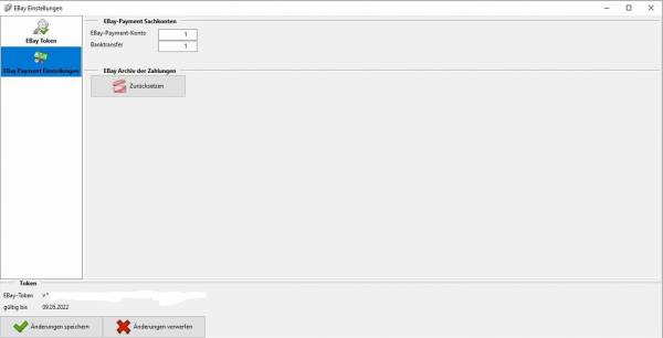 Unter Setup müssen Sie nun in der Schnittstelle das Sachkonto für die eBay-Bank