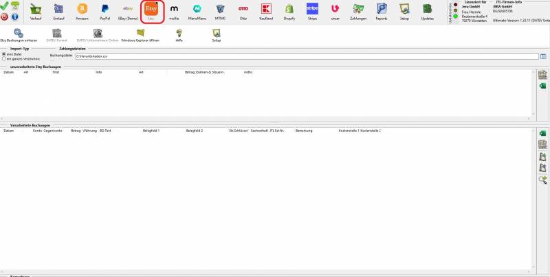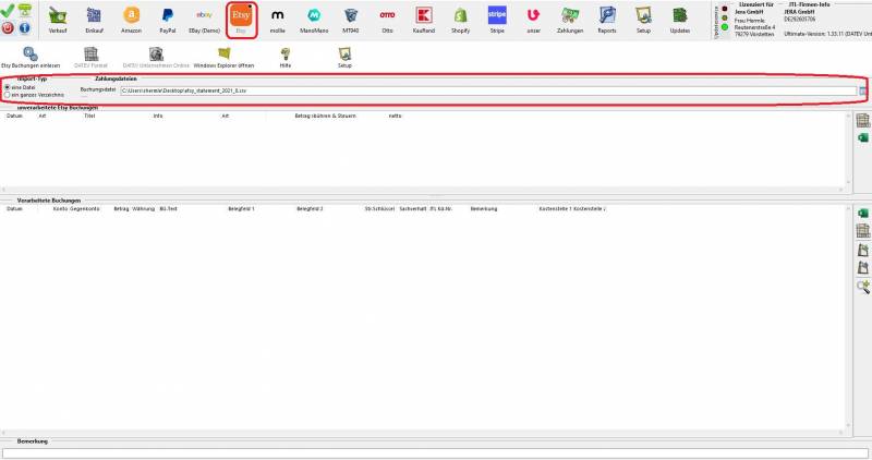 Die aus dem Etsy Shop-Manager heruntergeladene Datei können Sie über den Button „Windows-Explorer“ in Ihrer