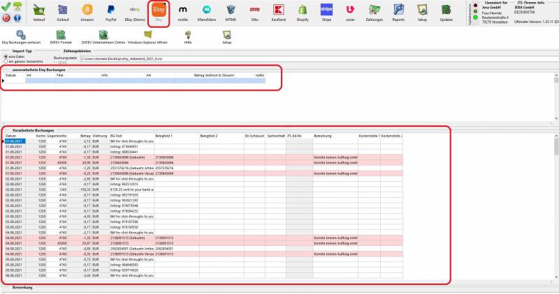 werden konnten. Die Datensätze würden exportiert werden, finden aber dann in der Buchhaltung keinen offenen Posten zum Ausgleich.