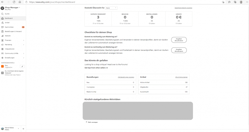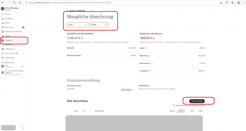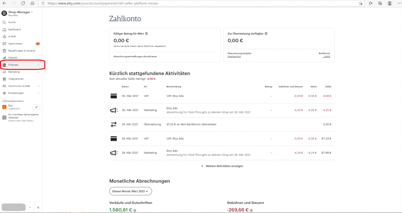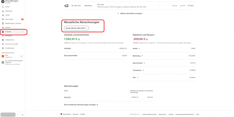 Im Etsy Shop-Manager wählen Sie bitte die Funktion „Finanzen“ (Abb. 2).