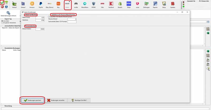 Feld für das Konto, welches als Debitor für Idealo-Zahlungen verwendet werden soll,