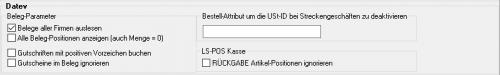 Werden die Daten LS-POS Kasse separat in die Finanzbuchhaltung exportiert, können die Belege der Kasse in der Schnittstelle ignoriert werden. - RÜCKGABE Artikel-Positionen ignorieren
