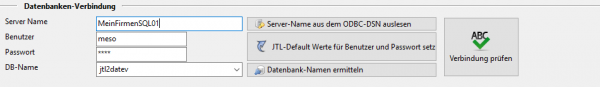 Für den Fall, dass der ODBC-Eintrag nicht vorhanden ist, kann die Schnittstelle auch direkt auf den SQL-Server zugreifen.