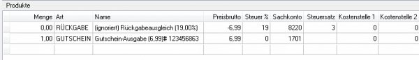 Hier die gebuchte Rückgabe mit dem Erstellen eines Gutscheins.