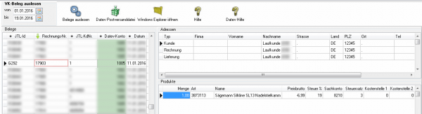 - Die Belege aller in JTL angelegten Firmen auslesen.