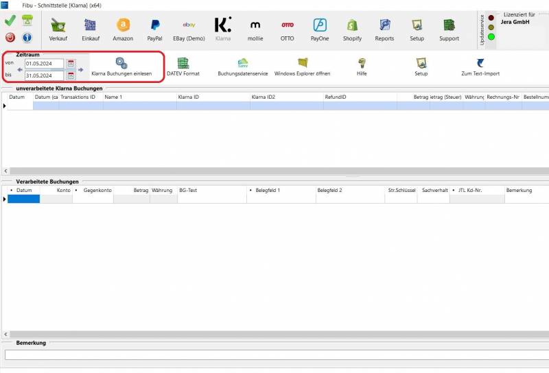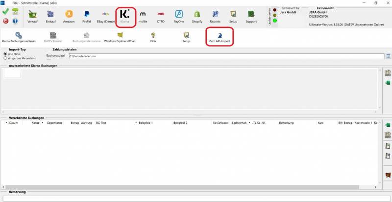 „Klarna Buchungen einlesen“ in die Schnittstelle eingelesen und wie gewohnt verarbeitet werden (vgl. Abb. 8).