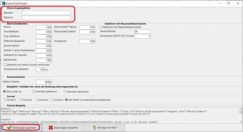 Zugangsdaten ein und speichern Sie diese mit dem Button „Änderungen speichern“ ab.