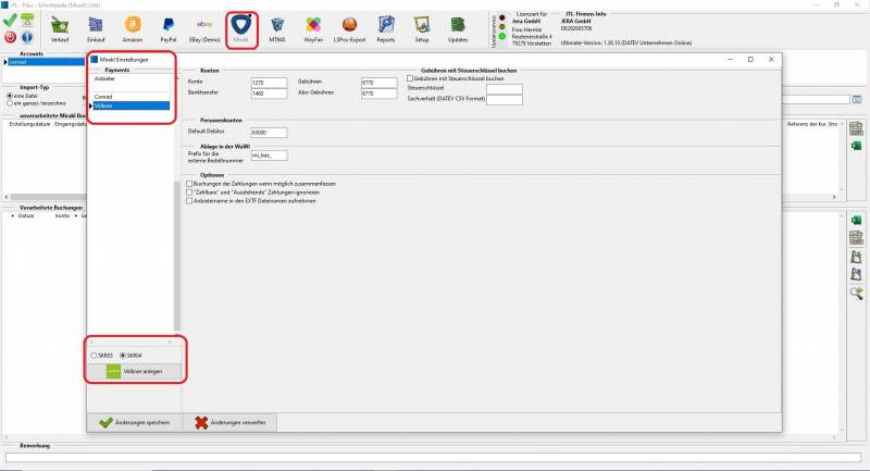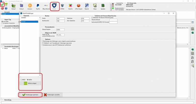 Um die Kontierung für die Mirakl-Zahlungen zu hinterlegen, öffnen Sie bitte innerhalb der Schnittstelle