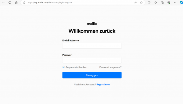 Es öffnet sich die Maske zur Einwahl in Ihr mollie Backend (Abb. 2). Bitte melden Sie sich mit den Zugangsdaten