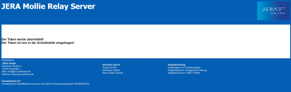 Sie erhalten die Meldung, dass der Token erzeugt und in der Schnittstelle hinterlegt wurde (Abb. 3).