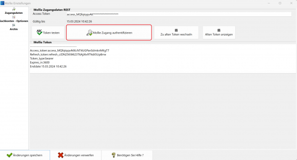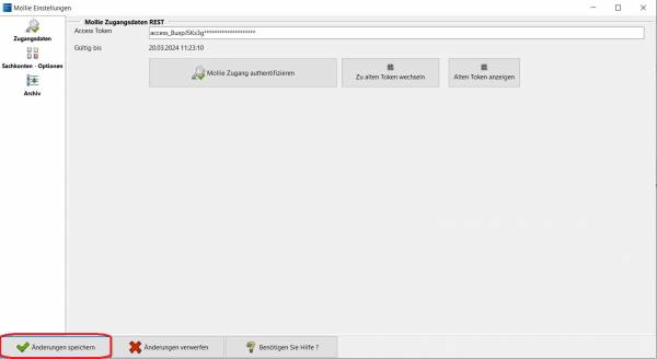 „Änderungen speichern“ den neu erzeugten Token in der Schnittstelle hinterlegen (Abb. 4).