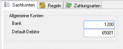 Da meist mehrere Zahlungsarten der Warenwirtschaft über die Bank gebucht werden, kann die Schnittstelle unter Setup / Datev Einstellungen / Personenkonten keine Zahlung identifizieren. In diesem Fall müssen Sie hier das Default-Debitoren-Konto eintragen.