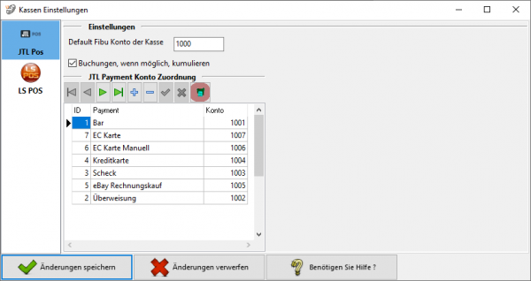 In den Einstellungen für die JTL-Pos können Sie ein Default-Konto für die Kasse festlegen.