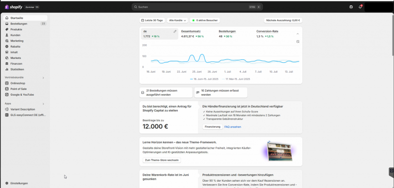 Es öffnet sich das Backend von Shopify. Wechseln Sie hier bitte in die Einstellungen (Abb. 2).