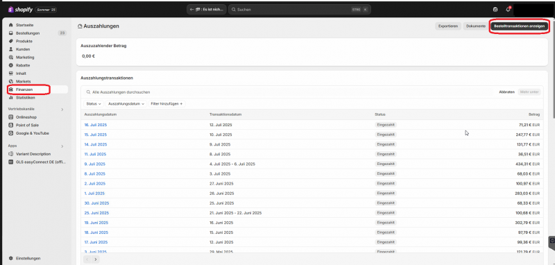 wechseln Sie bitte in die Schnittstelle und öffnen den Menüpunkt „Shopify“. Im Feld „Zahlungsdateien“