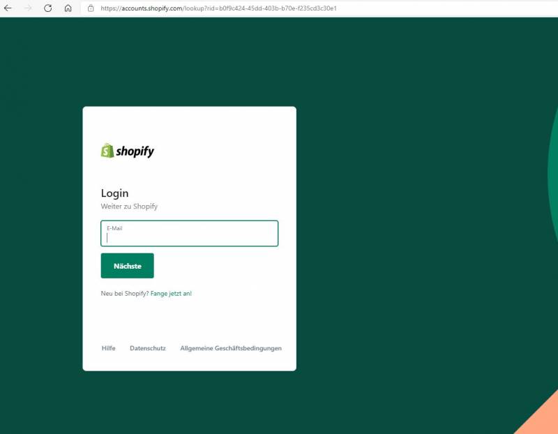 Zunächst wählen Sie sich bitte im Internet auf der Webseite von Shopify ein und melden sich mit Ihrem Benutzerkonto an