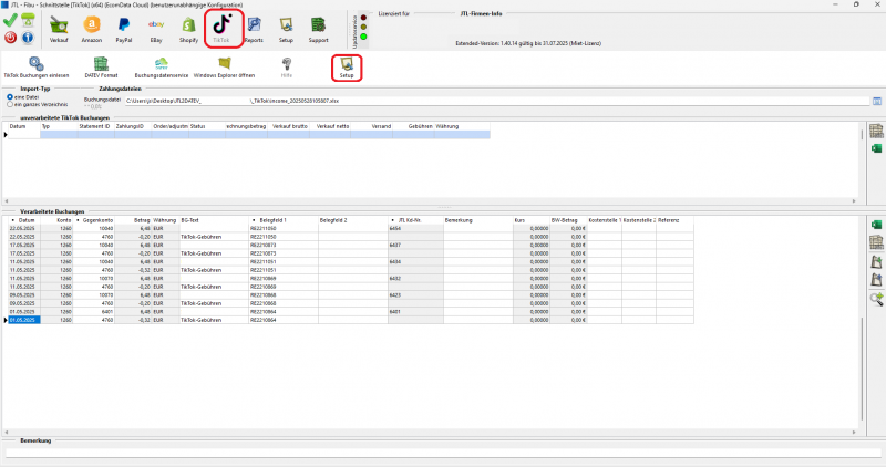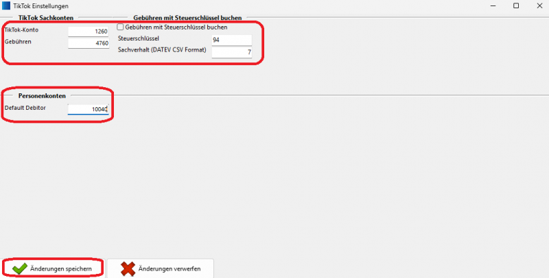 - Gebührenkonto für die Gebühren, welche durch TikTok anfallen