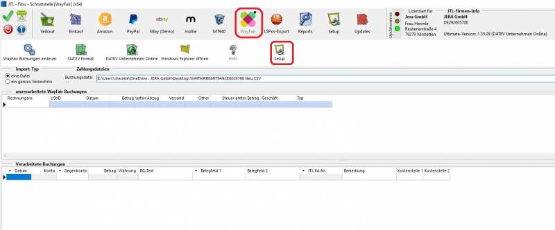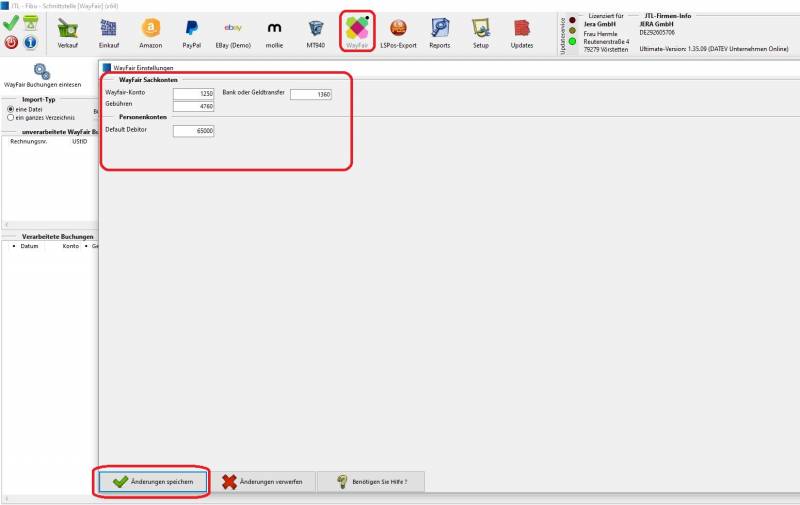 Die Konten, welche durch die Erlöse von Wayfair-Verkäufen bebucht werden, können Sie im Setup unter Wayfair hinterlegen (Abb. 1).