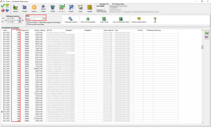 An dieser Stelle ist es möglich, die in der JTL-Warenwirtschaft hinterlegten Zahlungen zu exportieren.