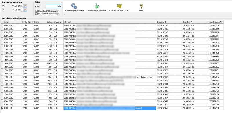 Danach können Sie alle Zahlungen, die der Zahlungsart „Überweisung“ zugeordnet sind und damit dem Konto 1230 zugeordnet sind, exportieren.