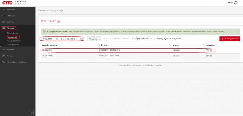 Bitte beachten Sie, dass Sie die Kontoauszüge für die Zahlungsdienstleister getrennt herunterladen und