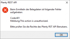Wenn der API-Nutzer nicht genügend Rechte hat, erhalten Sie in der Schnittstelle folgende Fehlermeldung: