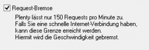 Plenty hat ein Limit für die Anzahl der Requests festgelegt. Dies berücksichtigt nun auch die Schnittstelle. Werden mehr als 100 Requests pro Minute ausgeführt, pausiert die Schnittstelle 60 Sekunden, um das Limit von Plenty zu umgehen.