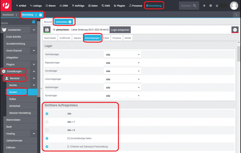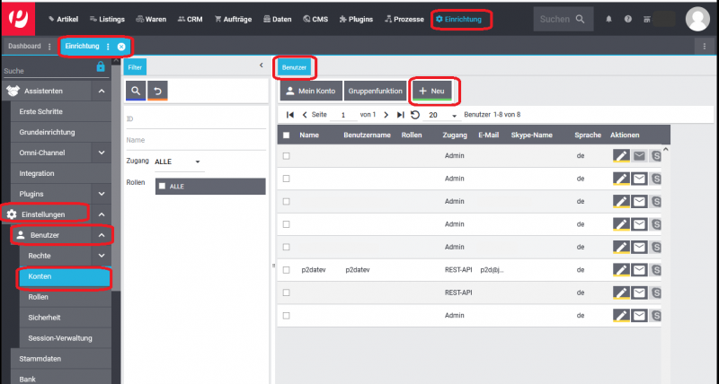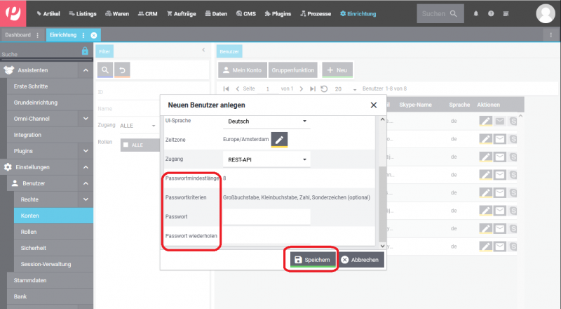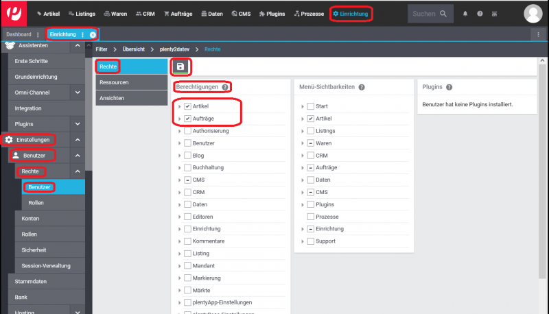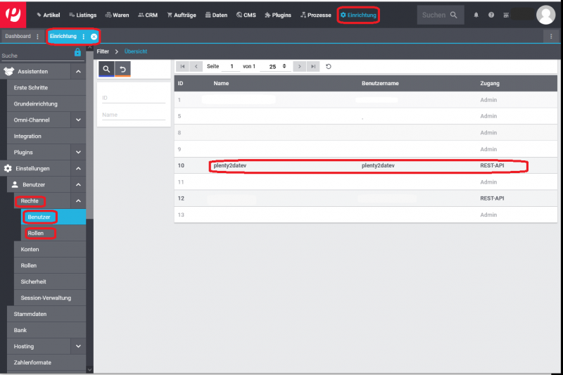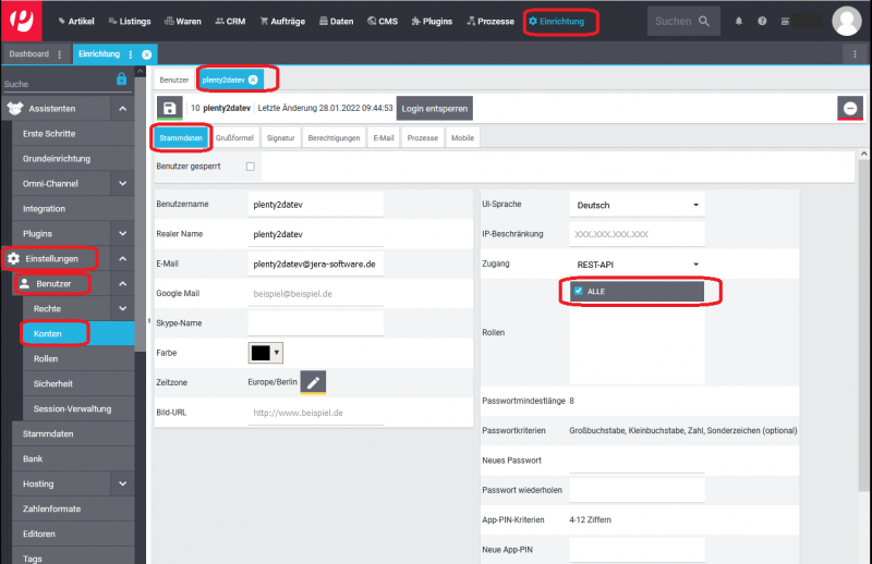 Anlage eines Rest-API Benutzers in Plentymarkets