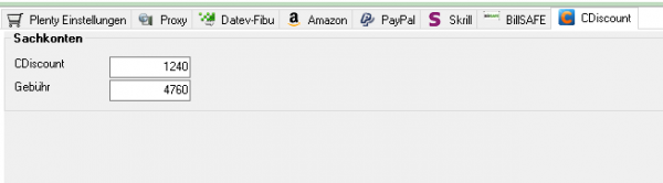 Tragen Sie hier bitte das Sachkonto für die CDiscount Zahlungen und das Sachkonto für die Gebühren ein.