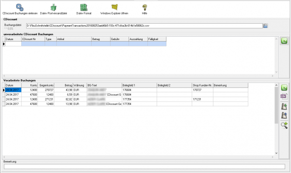 Klicken Sie nun auf den Button „CDiscount Buchungen einlesen“.