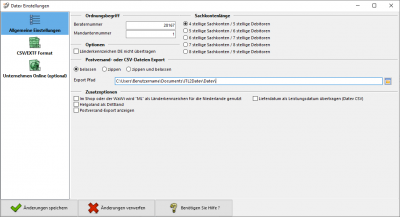 Finden Sie im Menü unter „Setup / DATEV-Einstellungen / DATEV-Vorlauf-Parameter / Allgemeine Einstellungen