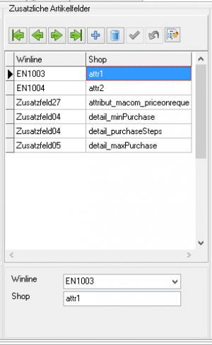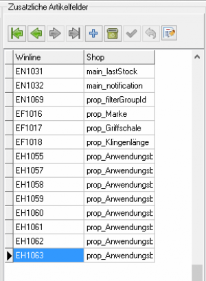 Im Shop ist eine Eigenschaft „Marke“ hinterlegt. Diese soll mit einen Wert in der Winline befüllt werden. Legen Sie dies enstprechend den oberen Beispielen in dieser Zuordnungstabelle an. Das Zielfeld würde in diesem Fall „prop_Marke“ lauten.