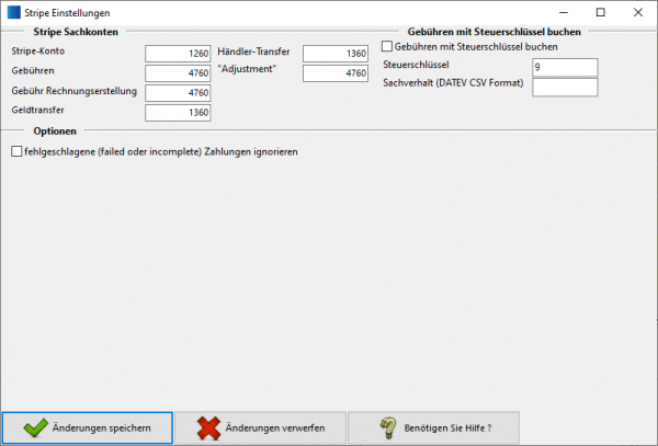 Hier werden die Stripe-Sachkonten festgelegt.