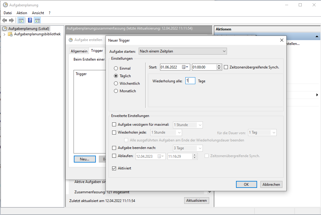 Sie befinden sich hier: Wiki für die Fibu-Schnittstellen der Jera GmbH » common » Aufgabenplanung - Taskplaner in Windows 10/11 : planner4.png