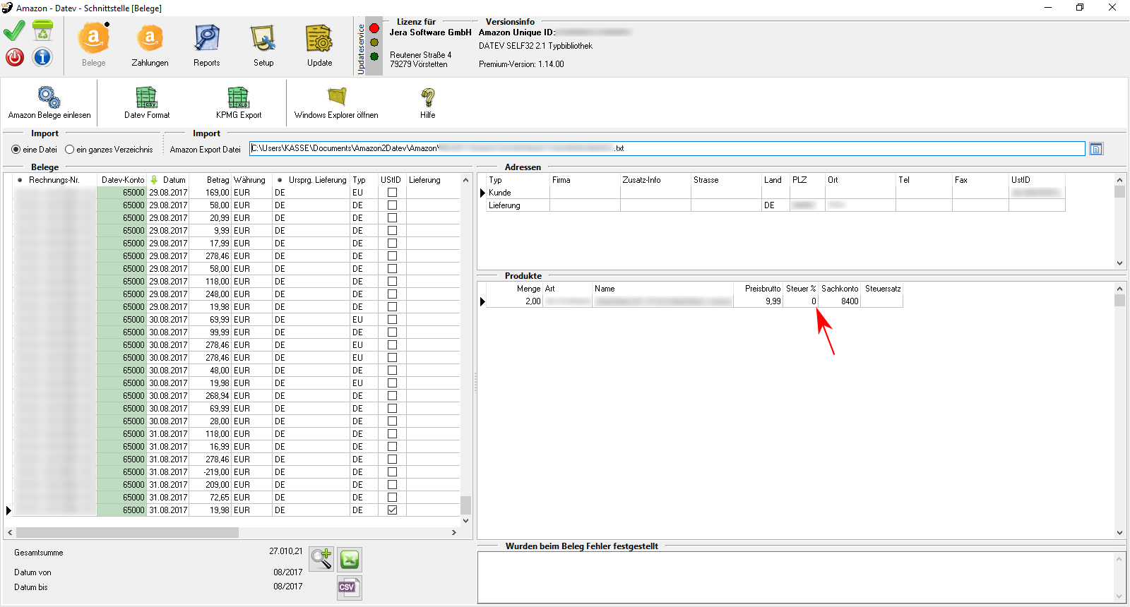 Sie befinden sich hier: Wiki für die Fibu-Schnittstellen der Jera GmbH » DATEV » Amazon » Amazon Datev Beleg Export : belegimport2.png