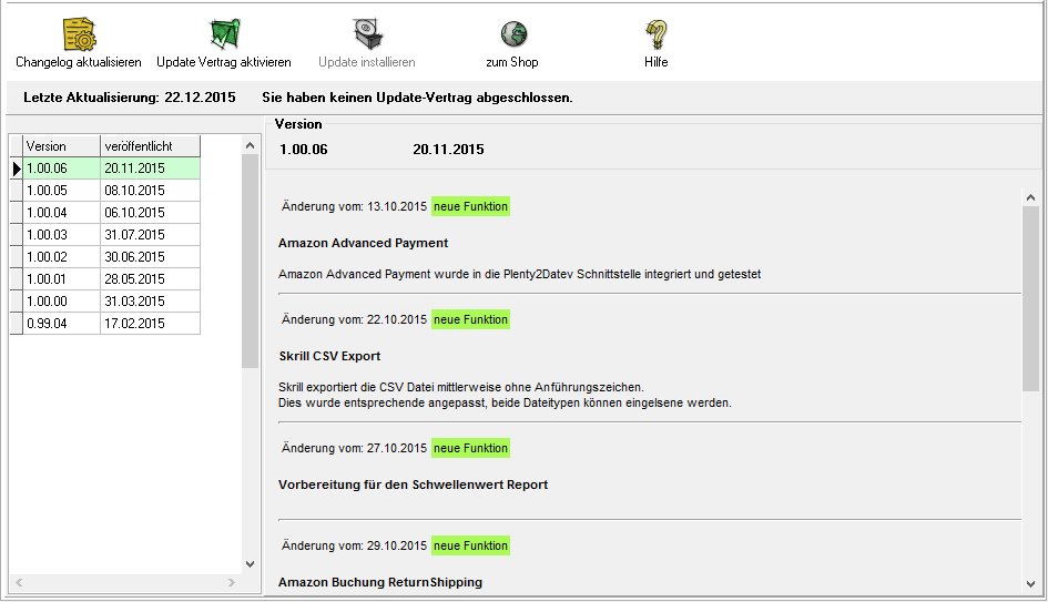 Sie befinden sich hier: Wiki für die Fibu-Schnittstellen der Jera GmbH » DATEV » common » Changelog und Update aktivieren : changelog.png