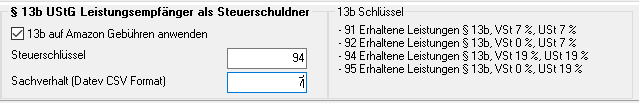 Sie befinden sich hier: Wiki für die Fibu-Schnittstellen der Jera GmbH » DATEV » jtl » amazon » Einstellungen Amazon Zahlungsreport » Sachkonten für Amazon-Zahlungen : amazon13b.png
