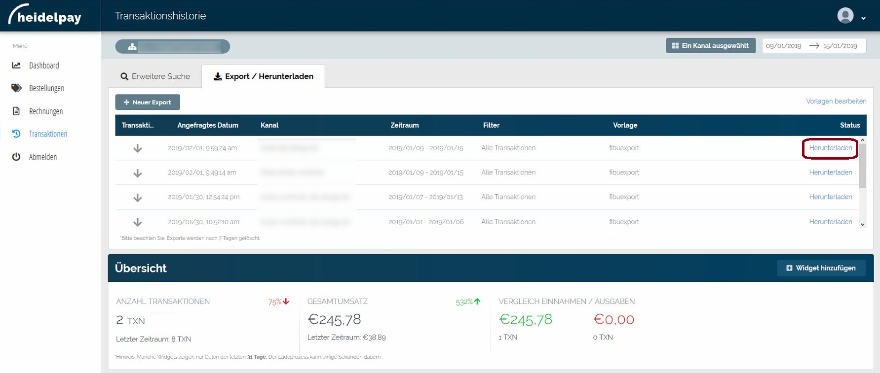 Sie befinden sich hier: Wiki für die Fibu-Schnittstellen der Jera GmbH » heidelpay » Unzer Kontoauszug erstellen : heidelpay_export_download.png