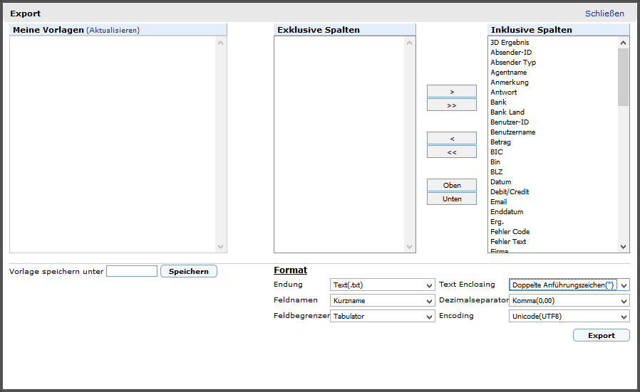 Sie befinden sich hier: Wiki für die Fibu-Schnittstellen der Jera GmbH » heidelpay » Unzer Kontoauszug erstellen : heidelpayexportform2.png