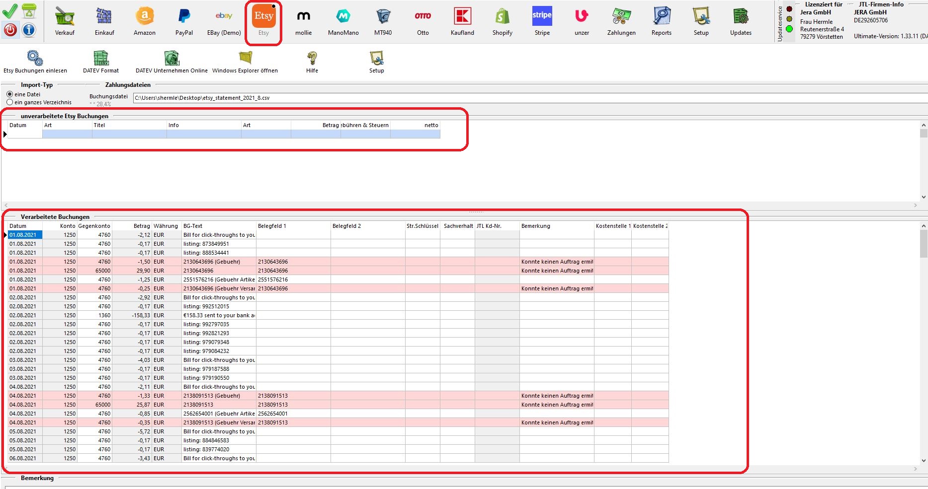 Dokumentation Fibu-Schnittstellen der Jera GmbH